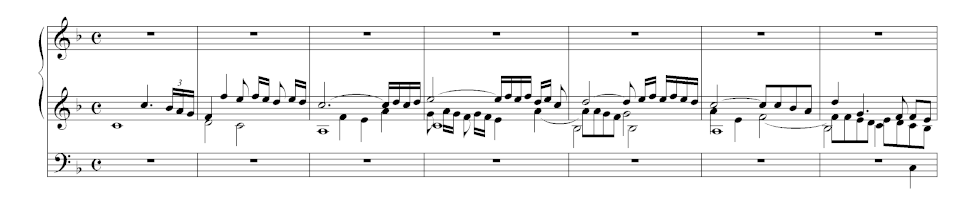 The first two lines of the hymn text, or the first Stollen, are the subject of the first 81 bars of Reincken's chorale fantasia.[5] The melody of the first line of the hymn is recognisable as a cantus firmus in the tenor voice in the first six bars of the composition:[17][18]