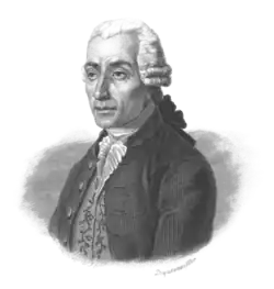 André Jacob Roubo was born in Paris in 1739, the son and grandson of fellow woodworkers.[1] His father was a joiner, and André became his apprentice in 1750 at the age of 11.[6] Despite having a relatively poor upbringing, André was literate and taught himself various topics including mathematics and design. His dedication for learning attracted the attention of several professionals, including the architect Jean-François Blondel.[1] Roubo became a pupil of Blondel who waived his tuition fees, and spent five years studying whilst also working for his father during the day. He received the title of Master in 1770 upon publication of the first part of L'Art du Menuisier. He designed and supervised the construction of the great domes of the halls Wheat and Cloth, and a monumental staircase to the hotel of the Marquis de Marbeuf.