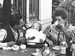 Andrée Lumière (center) with her parents in Repas de bébé (1895)