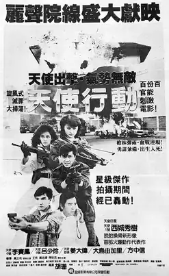 Angel (Chinese title: 天使行動, Tin si hang dung, transl. "Angel Operation")[a] is a 1987 Hong Kong action film inspired by Charlie's Angels which stars Moon Lee and Yukari Oshima.[5][6] The film is noted for launching the careers of both Lee and Oshima.[7][8] Angel has also been credited with establishing the girls with guns action film subgenre along with Yes, Madam (1985).[5][9] The film was followed by two sequels: Angel II (1988) and Angel III (1989).[2]