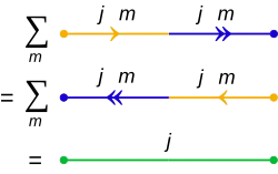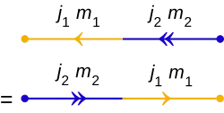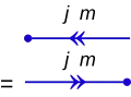 where the result for T|j, m was used, and the fact that m takes the set of values given above. There is no difference between the forward-time and reversed-time states for the outer product contraction, so here they share the same diagram, represented as one line without direction, again labelled by j only and not m:
