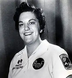Anita Cantaline (born c. 1927) is a former American professional bowler from Detroit and later Warren, Michigan. A graduate of Cass Tech High School, she won her first women's championship in 1948. In December 1955, she won the U.S. Women's Open. She was inducted into the Women's International Bowling Congress (WIBC) Hall of Fame in 1979.[1] She also won the Bowling Proprietors Association of America (BPAA) All-Star tournament in 1956, the WIBC all-events title in 1957, and WIBC team championships in 1957 and 1959.[2][3] She was also named the BPAA National Individual Match Game champion in 1956. She was the first woman to win both the singles and doubles championships in the same year and was named 1956 Bowling Writers Association of America Bowler of the Year.[4] As of 2008, she had made 62 tournament appearances.[5]