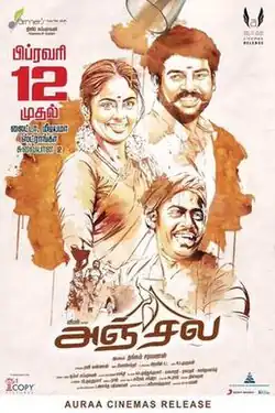 Anjala is a 2016 Tamil-language comedy drama film[1] directed by Thangam Saravanan and produced by Dhilip Subbarayan. Vimal and Nandita star, while Gopi Sunder composes the film's music.[2]