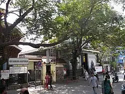 When Anna Nagar was developed as a model town in the late 1960s, the annual vilakku pooja during the mandala makaravilakku season was celebrated by Ayyappa devotees in the newly formed Shanti Colony. The residents' response to this annual celebration resulted in the formation of the Sri Ayyappa Seva Samajam (SASS) in 1976, with 14 members in its committee. In 1979, the Samajam started a charitable medical centre for the poor and needy.[1] The same year, a 7-ground land near the Visveswarayya Tower was allotted to the Samajam by the Tamil Nadu Housing Board for the construction of a temple, for which members contributed ₹ 38,000 towards initial payment.[1] Initially, a makeshift temple was built in a thatched shed along with a charitable medical centre in another shed.[2] Work on the construction of a permanent temple continued for the next five years in consultation with temple architect Kanipayyur Krishnan Namboodiri. The construction was guided by P. N. Subramaniam, the founder-president, P. Chandrasekhara Menon, the second president, and P. V. Nair, and financial support was provided by R. Ratnam, then chairman of Sundaram Industries, and P. Velayudham.[1] In May 1984, the typical Kerala-style temple was completed, conforming to the traditional shastraic stipulations. The kumbabishekam and consecration of the idol were performed on 13 May 1984 by temple Thantri Abli Krishna Vadhyan Namboodiri and K. M. Kesva Battatripad, former chief priest of the Sabarimala Temple.[2] The panchaloha Ayyappan idol was made by Chenganur T. Rajarathinam.[1] Idols of Ganesha, Subramanya, Goddess Durga, and Anjenaya were also consecrated. Later, a Navagraha (the nine planets) shrine was added in the temple. In 1989, a unique architectural structure known as the Natamandapam with an imposing gopuram was added. In 2005, gold covering of the 22-paras (segments) dwajasthambam and 27 thazhikakudams with about 6 kg of gold was completed. A special kumbabishekam of the gold-covered dwajasthambam was performed on 20 June 2005.[2]