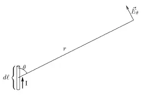 The (small) electric field of the electromagnetic wave radiated by an element of current is: