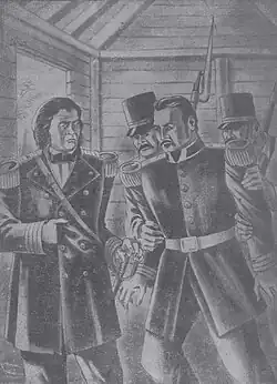 Illustration of Duvergé confined to prison by Santana in 1849.
