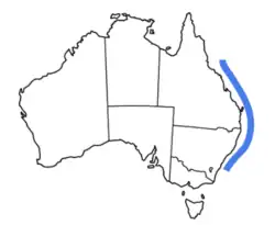 Distribution of the eastern shovelnose ray from southern Queensland to southern New South Wales.