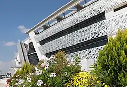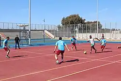 The outside sport fields include a five-a-side soccer field, basketball courts, handball courts, volleyball courts, tennis courts, badminton courts, and a stadium for over 2,500 people.[23]