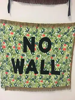 Sifuentes's Protest Banner Lending Library project was conceived following the 2016 presidential election. Sifuentes was unable to attend protests because she had a small child; she also felt she would be unsafe at such events because she was not then a US citizen.[8] The library is a space where folks can make banners, but also borrow a banner to be used in protest and then be returned. The project has taken place at the Jane Addams Hull-House Museum in partnership with Gallery 400, Smart Museum, Comfort Station, Chicago Cultural Center, School of the Art Institute of Chicago, the Art Institute of Chicago, the Handwerker Gallery at Ithaca College, the Johnson Museum of Art, and at the Whitney Museum — where she worked with Cauleen Smith as part of the 2017 Whitney Biennial's programming.[9]
