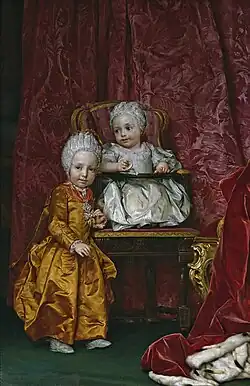 - ^ Genealogie ascendante jusqu'au quatrieme degre inclusivement de tous les Rois et Princes de maisons souveraines de l'Europe actuellement vivans [Genealogy up to the fourth degree inclusive of all the Kings and Princes of sovereign houses of Europe currently living] (in French). Bourdeaux: Frederic Guillaume Birnstiel. 1768. p. 109.