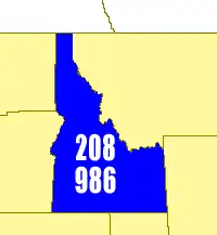 Area codes 208 and 986 are telephone area codes in the North American Numbering Plan for all of Idaho. Area code 208 is one of the 86 original area codes created by the American Telephone and Telegraph Company (AT&T) in 1947, and was Idaho's sole area code for seventy years. In 2017, 986 was added as a second area code to the same numbering plan area by creating an overlay complex.