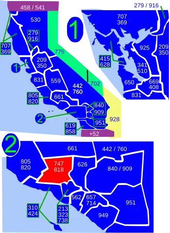 Area codes 818 and 747 are telephone area codes in the North American Numbering Plan (NANP) for the San Fernando Valley region of Los Angeles County in the U.S. state of California.