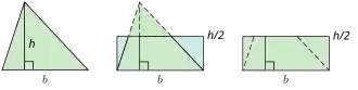 In geometry, calculating the area of a triangle is an elementary problem encountered often in many different situations. The best known and simplest formula is where b is the length of the base of the triangle, and h is the height or altitude of the triangle. The term "base" denotes any side, and "height" denotes the length of a perpendicular from the vertex opposite the base onto the line containing the base. Euclid proved that the area of a triangle is half that of a parallelogram with the same base and height in his book Elements in 300 BCE.[1] In 499 CE Aryabhata, used this illustrated method in the Aryabhatiya (section 2.6).[2]