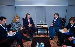 In September 2016, Argentine President Mauricio Macri and Ukrainian President Petro Poroshenko met during the United Nations General Assembly in New York City.[5] In 2016, both nations celebrated 25 years since re-establishing diplomatic relations.[8]