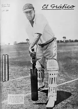 Between the wars, infrequent fixtures were played against Brazil and Argentina, and were at that time included in Wisden's cricket records.[14] First-class matches were played against an elderly[15] MCC side in 1926/27, Sir Julien Cahn's XI in 1930 and Sir Theodore Brinckman's XI in 1937/38.[9] The four-match series against the MCC was lost 2–1, with one game drawn.[16] The three-match series against Sir Julien Cahn's XI finished with two draws, Cahn's XI winning the first game[17] and the series against Brinkman's XI was drawn 1–1.[18] That series was Argentina's last involvement in first-class cricket to date.[9]