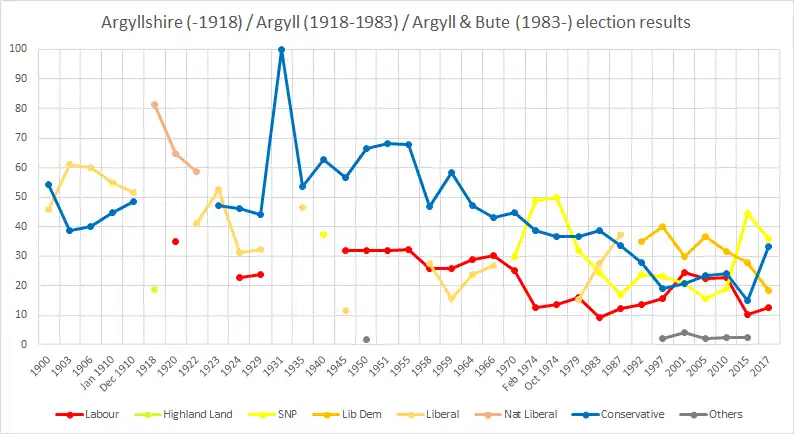Until Scottish counties were abolished, for most purposes, in 1975, the constituency represented the county of Argyll, except that constituency boundaries may not have coincided at all times with county boundaries, and any parliamentary burgh within the county would have been outside the constituency.