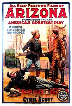 Arizona is a 1913 American silent Western film directed by Augustus Thomas based on his 1899 play Arizona which on stage starred Vincent Serrano and Eleanor Robson. It is one of the first feature films made in the United States, alongside Cleopatra and Richard III. Cyril Scott plays the lead Lt. Denton.[1][2]