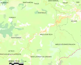 Arles-sur-Tech is located in the canton of Le Canigou and in the arrondissement of Céret.[3]