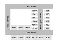 Arlington's local numbered and named streets are not through streets, except for a few streets in North Arlington, and thus each number or name can appear multiple times at multiple locations in the county but always according to the grid. For example, there are several 12th Streets South or North Kensington Streets in various areas of the county. In cases where more names are needed to avoid confusion in areas of denser street construction, numbered (east–west) streets are first designated "street", then "road," then "place," and in one instance, "avenue".[1] For example, 37th Street North, 37th Road North, and 37th Place North are all in the same general area. Named (north–south) local streets follow rules regarding initial letter and syllable number but there can be multiple street names with the same initial letter number of syllables, almost all ending with "street". For example, North Kenilworth Street, North Kensington Street, and North Kentucky Street are all in the same area.