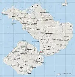 A map of the 98 km2-large Sahrani Island