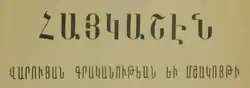 | Ochacan[5][10] | Օշական | "Oshakan" | Bi-monthly magazine | 1920 | Paris | ![]() |