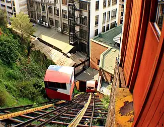 The Ascensor Concepción is the oldest of the funiculars of Valparaíso, Chile. Inaugurated on December 1, 1883,[1] It connects the Elías Alley, which faces the Reloj Turri on the Plan de Valparaíso, with the Gervasoni Promenade on the Concepción Hill. The funicular was declared a Historic Monument on September 1, 1998.[2]