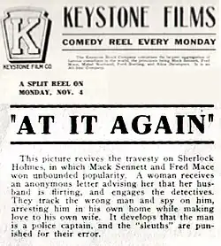 Six weeks after Sennett opened Keystone Studios in Edendale, California in 1912, he reintroduced the pair of dopey detectives.[5] The first Keystone Film comedy featuring the two Sherlocks was At It Again.[6]