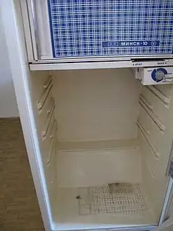 The first refrigerator (a CRS-125 Minsk-1 (Russian: ХКС-125 Минск-1)) was delivered in June 1962.[5] These were the first modern Soviet refrigerators with incorporated freezers and polyurethane insulation. Mass production of Minsk-2 refrigerators began in 1964. By 1971, production facilities had been expanded, and the factory's one millionth refrigerator was produced in that year.