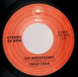"Auf Wiedersehen" (German for "Goodbye") is a song co-written by Cheap Trick guitarist Rick Nielsen and bassist Tom Petersson and first released on the band's 1978 album Heaven Tonight.[1][2] It was also released as a single as the B-side of "Surrender". Since its original release, it has also been released by Cheap Trick on several live and compilation albums, including Budokan II; Sex, America, Cheap Trick; The Essential Cheap Trick, and the 30th Anniversary Edition of Cheap Trick at Budokan, which also includes a DVD with a video performance of the song.[3] Allmusic critic Stephen Thomas Erlewine described the song as one of the peaks of Heaven Tonight and as one of Cheap Trick's "stone-cold classics."[1][4] It has often been used by the band to close their concerts.[5] Since its original release, it has been covered by Anthrax, Cell, John Easdale, and Steel Pole Bath Tub.