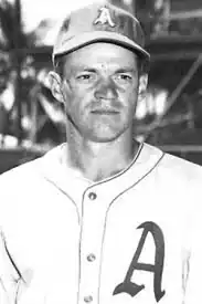 He resumed his playing career in the International League in 1946 and the following year made his only Major League appearances. In his April 19, 1947, debut for the Athletics, he was a pinch runner against the Boston Red Sox, and mostly languished on the bench in the early weeks of the campaign, getting only five at bats before the May cutdown date, when he was optioned to the Triple-A Toronto Maple Leafs. After batting .278 in 105 games for Toronto that season,[4] he was recalled by Philadelphia in September and started eight games, playing all three outfield positions through season's end. He resumed his minor league career in 1948 and played through 1954, with the exception of the 1952 season.