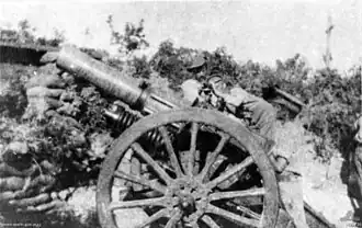 1st Heavy Artillery Battery was an Australian artillery unit during World War I.[1] Formed at Gallipoli on 14 July 1915 the battery formed part of the 1st Division artillery. The battery was originally equipped with 2 old 6 inch 30 cwt howitzers and one even older 4.7 inch naval gun.[2] The battery was disbanded in Egypt during February 1916 to provide personnel for howitzer batteries.