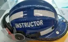 Instructors wear a blue helmet marked with INSTRUCTOR on each side when undertaking instructing or assessing activities.