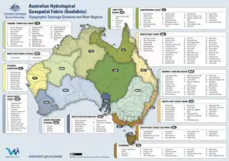 Water management is a major issue in Australia. The nation is struggling with over-allocation issues and increasing variability.[56] Effectively governing such issues has proven to be problematic.[56] Public institutions responsible for water management include the Murray–Darling Basin Authority, which manages water resources in the Murray–Darling basin, Australia's largest river catchment.