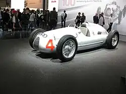 The Auto Union Grand Prix racing cars types A to D were developed and built by a specialist racing department of Auto Union's Horch works in Zwickau, Germany, between 1933 and 1939, after the company bought a design by Dr. Ferdinand Porsche in 1933. The Auto Union type B streamlined body was designed by Paul Jaray.[1]
