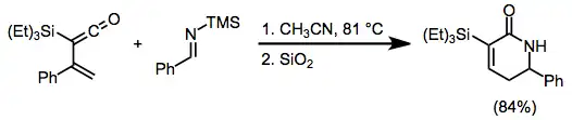 - ^ Bennett, D. M.; Okamoto, I.; Danheiser, R. L. (1999). "Hetero 4 + 2 cycloadditions of (trialkylsilyl)vinylketenes. Synthesis of alpha,beta-unsaturated delta-valerolactones and -lactams". Org. Lett. 1 (4): 641–4. doi:10.1021/ol9907217. PMID 10823193.