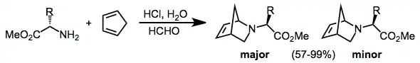 The imine is often generated in situ from an amine and formaldehyde. An example is the reaction of cyclopentadiene with benzylamine to an aza norbornene.[9]
