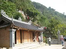 The original Bái Đính pagoda is located in the foothills some 800 meters from the new temple. Ascending a series of over 300 stone steps, the path passes under an ornamental gate to reach the entrance. The temple itself is located in a series of small caves on the mountainside. Along with Buddhist deities, natural spirits of the mountains are also venerated.
