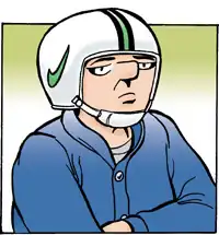 One of B.D.'s oddest traits was his helmet. For 34 years he was never seen without one. He wore a football helmet at college, as a coach and as a pro football player, a soldier's helmet in the army, a California Highway Patrol motorcycle officer's helmet [9] when he was a police officer. His only explanations for this were "My ears stick out" or "I have bad hair". In the February 21, 2006, strip he revealed that his mother used to put helmets on him, as a means of protection, when he was a child. When Ray visits B.D. in the hospital after losing a leg, he's more shocked at seeing B.D.'s hair than his injury.
