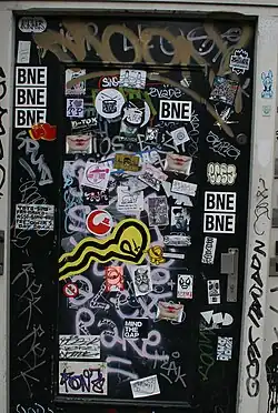 BNE is an anonymous graffiti artist known for stickers that read "BNE" or "BNE was here". The artist has left their mark in countries throughout the world, including the United States, Canada, Asia, Romania, Australia, Europe, and South America.[1] "His accent and knowledge of local artists suggest he is from New York."[2]