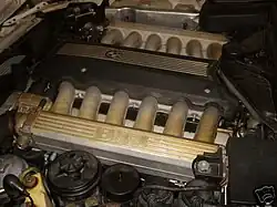 In 1991, BMW began production of its first V8 engine since the end of BMW 501/502 production in 1962.[22] This M60 V8 was introduced in the E32, along with the E34 5 Series. The 4.0 litre version powered the new 740i/iL models, and the 3.0 litre version was sold in parallel with the M30 straight-six in the 730i/iL models.[23] The top speed of the 740i was electronically limited to 240 km/h (149 mph).[24] Both V8 engines were coupled to a new, 5-speed automatic transmission made by ZF. The Nikasil bore lining used in the M60 engine was prone to damage when used with high-sulfur fuels.