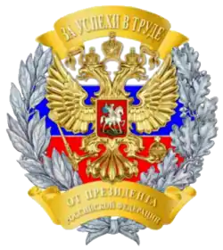 Awarding the honorary badge of the Russian Federation “For Success in Labour” is a form of encouragement to teams of enterprises, organizations and institutions, regardless of the form of ownership, for high achievements in the field of industrial and agricultural production, economics, science, culture, art, education, healthcare, education, physical culture and sports and for other services to the state over the last five years preceding the date of submission of the award proposal.[4]