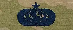 Current Space Force occupational badges are shared with the Air Force and come in the grades of basic, senior, and master or command. Space Force occupation badges are worn on the left side of the uniform in metal for the service and mess dress uniforms or embroidered in space blue on the OCP uniform. Space Force occupational badges are mandatory for wear.[3]
