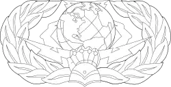 The Cyberspace Operator Badge is awarded to 17C cyberspace warfare operations commanders, 17D warfighter communications operations officers, and 17S cyberspace effects operations officers. It is awarded in the grades of basic, senior, and master, replacing the previous Communications and Information Badge on 21 April 2010.[9]