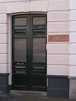 The first Baháʼí Local Spiritual Assembly of The Hague was formed in April 1952.[3] The members of that institution included Elisabeth Charlotte (Lottie) Tobias who would later serve on the regional spiritual assembly of the Benelux countries and the first National Spiritual Assembly of the Baháʼís of the Netherlands; she served on that institution from 1962 until 1986 and was continuously elected as secretary.[16] Also in 1952 was the second visit of a Hand of the Cause in the person of Dhikru'llah Khadem as part of a European tour.[17] 1954 saw a conference of Baháʼís from the Benelux countries.[18] In 1955 the national Baháʼí Centre in The Hague was purchased.[19]