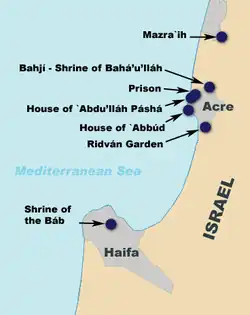 A Baháʼí pilgrimage currently consists of visiting the holy places in Acre and Haifa at the Baháʼí World Centre in Northwest Israel. Baháʼís do not have access to other places designated as sites for pilgrimage.[1][2]