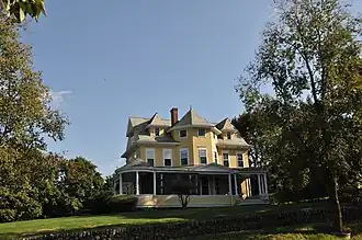 The Bailey House is a historic house in Ipswich, Massachusetts. It was built sometime between 1893 and 1910 to serve as the home and office Doctor Bailey, a prominent local physician. It is sited on a hill overlooking the central downtown area of Ipswich. The 2+12-story house is one of the most elaborate examples of Queen Anne/Colonial Revival architecture in central Ipswich. Roughly rectangular in plan, a veranda embellished with Colonial Revival details wraps around the north and west sides of the house. The central portion of the front is a protruding bay that also rises up through the bottom of the roof and is topped by a turret shaped gable extension. It is flanked on either side by small gable dormers.[2]