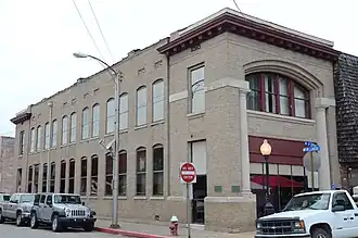 The Bank of Searcy is a historic bank building at 301 North Spruce Street in downtown Searcy, Arkansas. It is a two-story buff brick structure, whose main entrance is flanked by Doric columns supporting a segmented arch. The building has other vernacular elements of the Classical Revival, including segmented-arch window bays on the facade facing Arch Avenue. It was built in 1906, following a fire that destroyed many of the commercial buildings on the west side of the courthouse, which stands across North Spruce Street.[2]