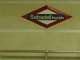 Current FGC plate at the Sabadell-Rambla station. This station was replaced with the construction of further stations in the town.