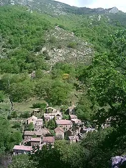Bardou is situated on the edge of the Massif Central mountain range, part of the Monts de l’Espinouse, in the Natural Regional Park of Upper Languedoc.[1] The nearest town in the east is Bédarieux (28 km; 17 mi), in the south is Béziers (39 km; 24 mi) and in the west is Saint-Pons-de-Thomières (33 km; 21 mi).