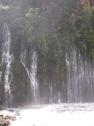 The river begins here as a natural convergence of a number of small streams and springs, and the water here is clean.[4][7] The water falling down the sides of the ravine creates small natural waterfalls or is taken advantage of to create natural fountains, which makes the park unique in Mexico.[4] Notable waterfalls include Camelina, La Yerbabuena, El Golgota, and Tzararácua. Fountains include La Copa de Oro, Cutzi – La Luna-, Arcoiris, Velo de Novia and Janintzizic.[2][7]